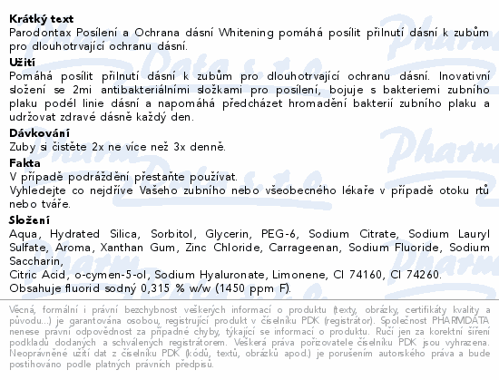 Parodontax Posílení a Ochrana dásní Whitening pomáhá posílit přilnutí dásní k zubům pro dlouhotrvající ochranu dásní.