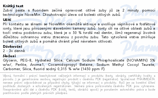 Zubní pasta s fluoridem začíná opravovat citlivé zuby již za 2 minuty pomocí technologie NovaMin. Dlouhotrvající úleva od bolesti citlivých zubů.