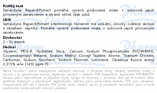 Sensodyne Repair&Protect pomáhá opravit poškozená místa v zubovině jejich přirozeným zacelováním a chránit citlivé části zubů.