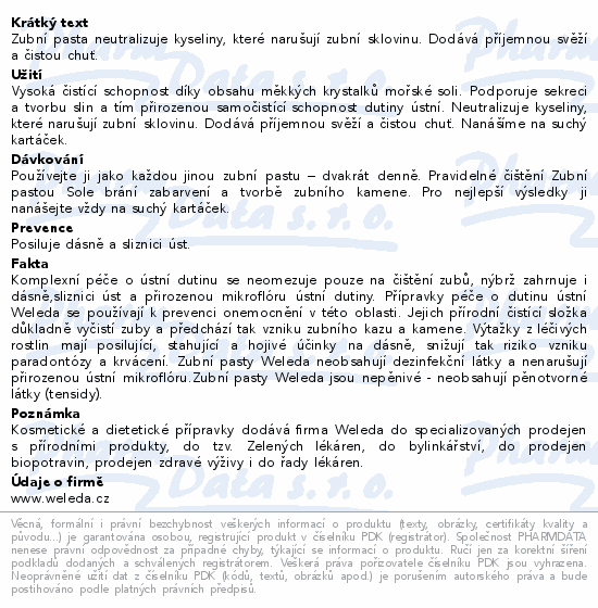 Zubní pasta neutralizuje kyseliny, které narušují zubní sklovinu. Dodává příjemnou svěží a čistou chuť.