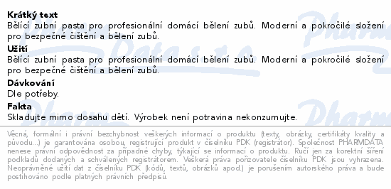 Bělící zubní pasta pro profesionální domácí bělení zubů. Moderní a pokročilé složení pro bezpečné čištění a bělení zubů.